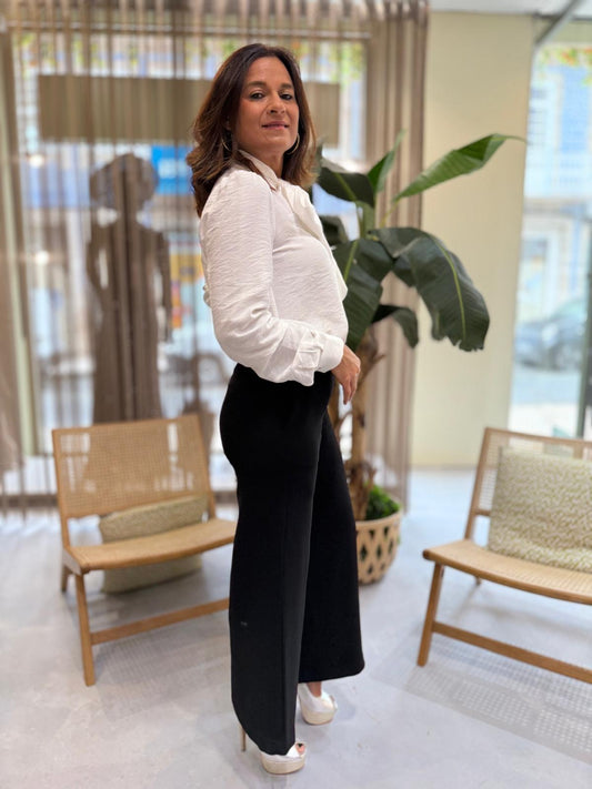 Blusa branca com laço no pescoço