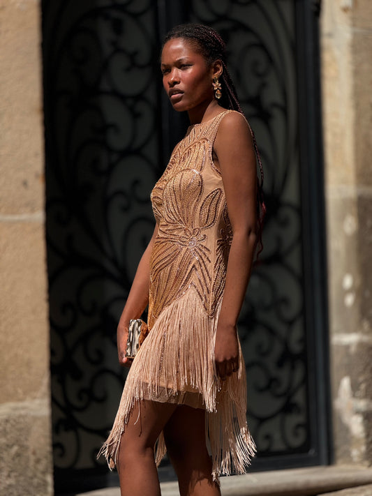 Vestido lantejoulas e franjas