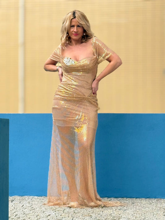 VESTIDO DOURADO SEMI-TRANSPARENTE