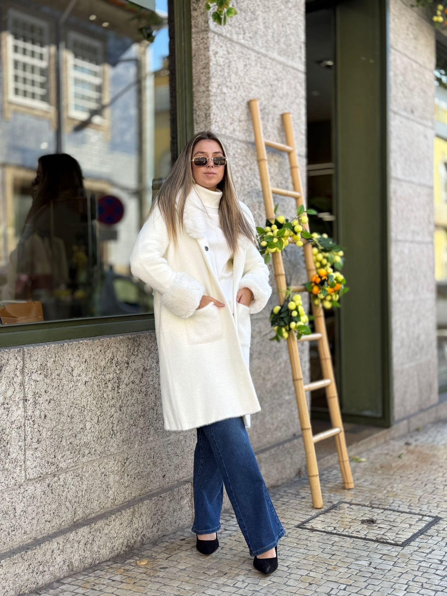 Casaco longo branco