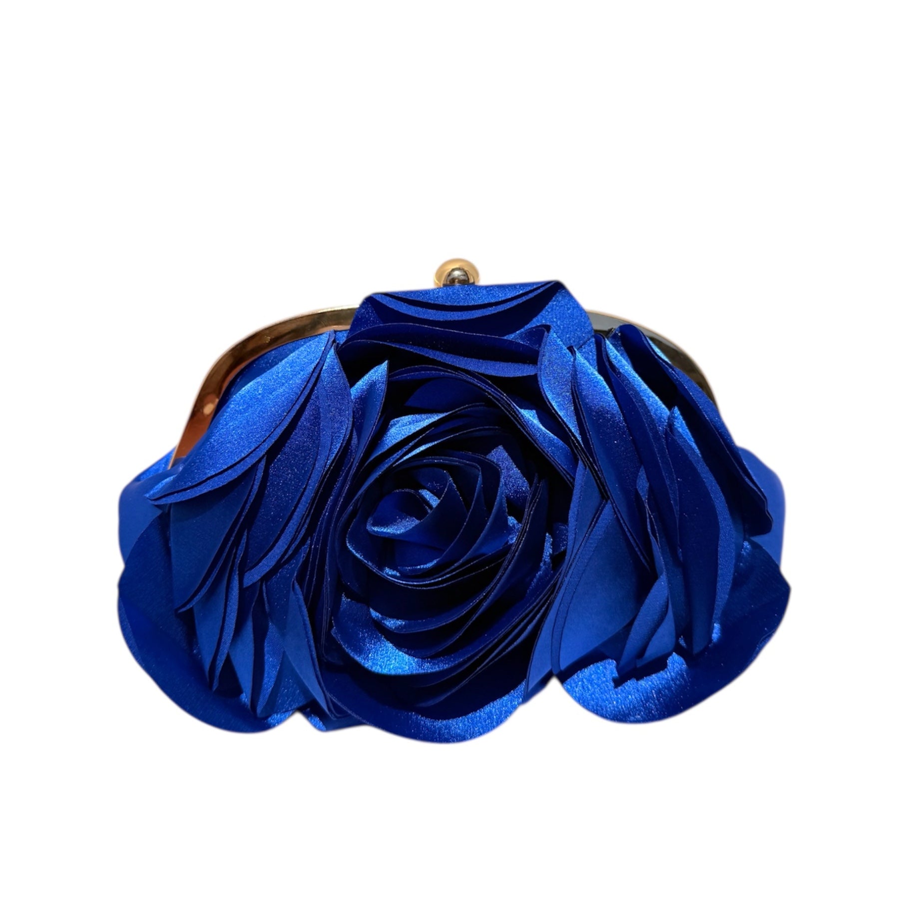 Pochete em em cetim, com formato em rosa, formato oval.